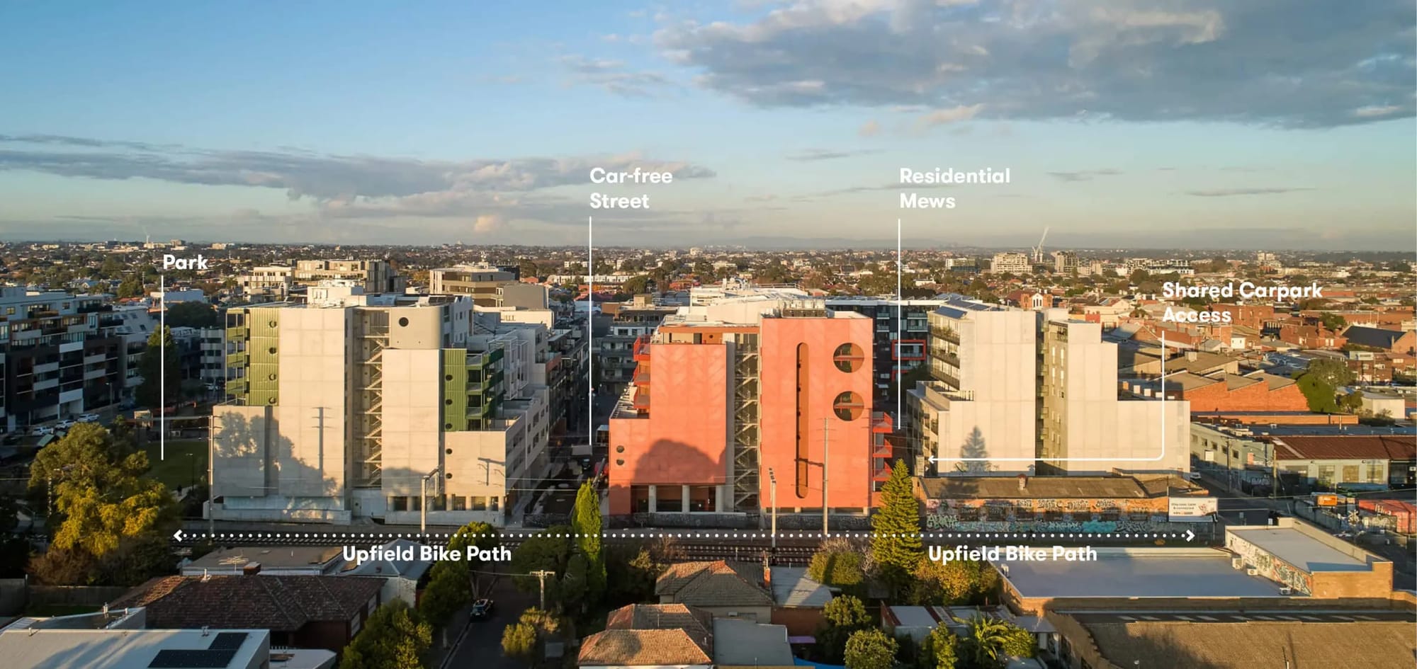 Brian Sholis: I’d like to begin by talking about the neighborhood. Nightingale Village is located about five kilometers north of Melbourne’s central business district. Can you tell me about what the neighborhood was composed of, historically, and how it’s changing today? What kind of context did Nightingale Village join?