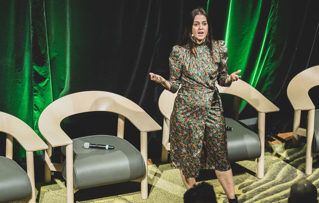 Yet the conversation that sticks with me most comes from a morning panel with designers working at a very small, and very local, scale: Stephanie Lipp, who has designed a leather alternative using mycelium; Justin Beitzel, who is designing furniture and products that “give back more than they take”; and Caroline Cockerham, whose company makes wool rugs in a circular process with local supply chains . After their conversation, an audience member asked, “Right now, companies like Chanel are on Fifth Avenue in Manhattan. How do we get companies like yours there instead?” The panelists gently redirected the impulse, suggesting that sprawling supply chains of the kind that support global flagships are part of the problem. You can’t connect your materials all the way back to the land; investor scale “is not compatible with human scale or the natural scale, the circularity that benefits us all.”